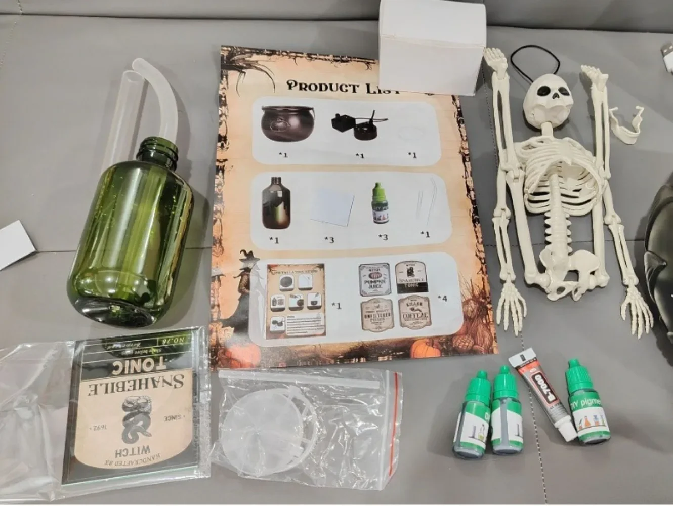 Create a spooky vibe this Halloween with this LED fog cauldron that looks like potion bottles are magically pouring mist! The built-in fog machine and glowing lights make it perfect for parties, haunted houses, or home décor.